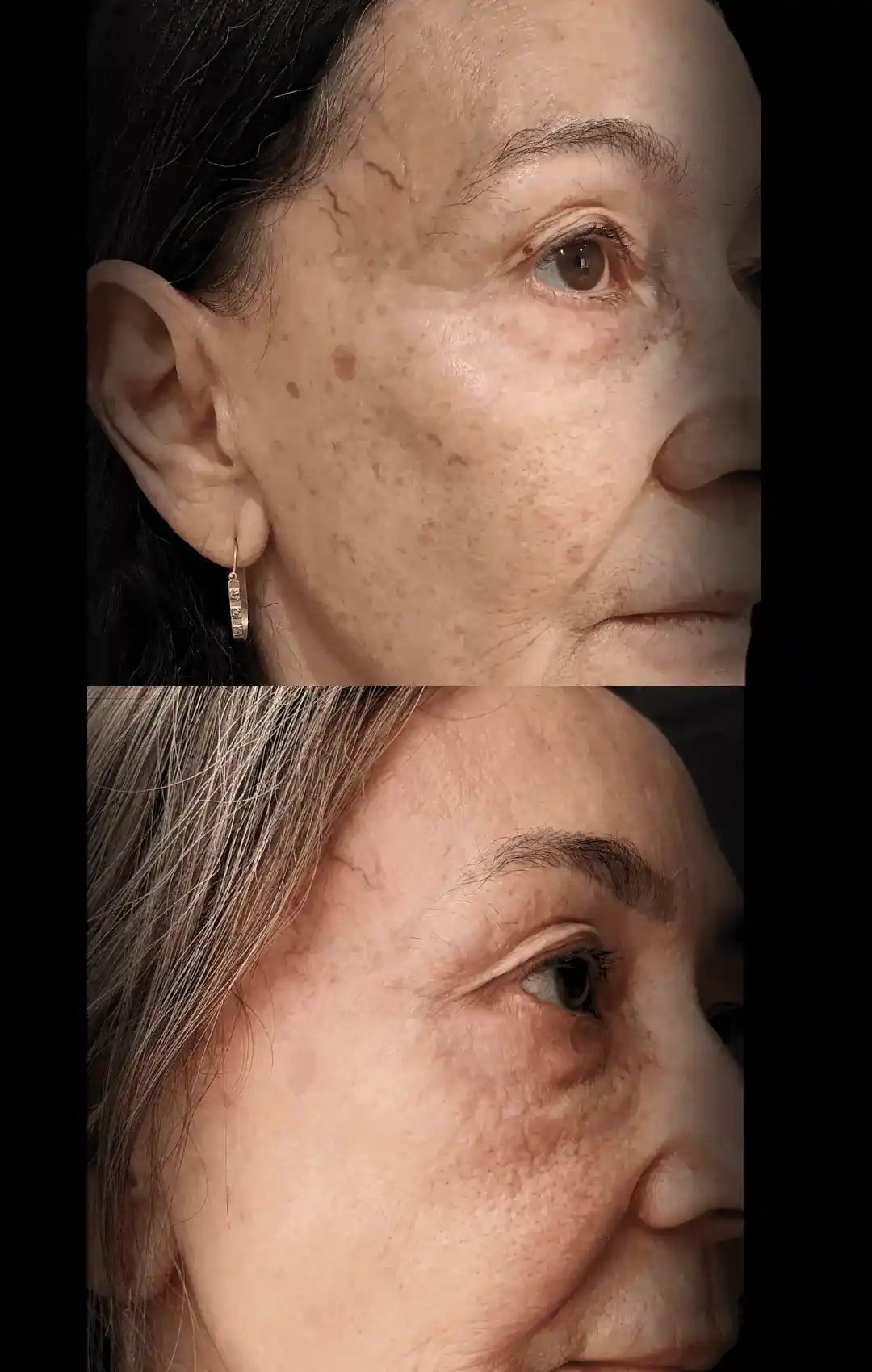 Imagine realizar esse mesmo tratamento numa face de 40 anos e numa face de 62 anos. É intuitivo pensar que o resultado vai ser diferente! Que precisaremos de algo a mais!