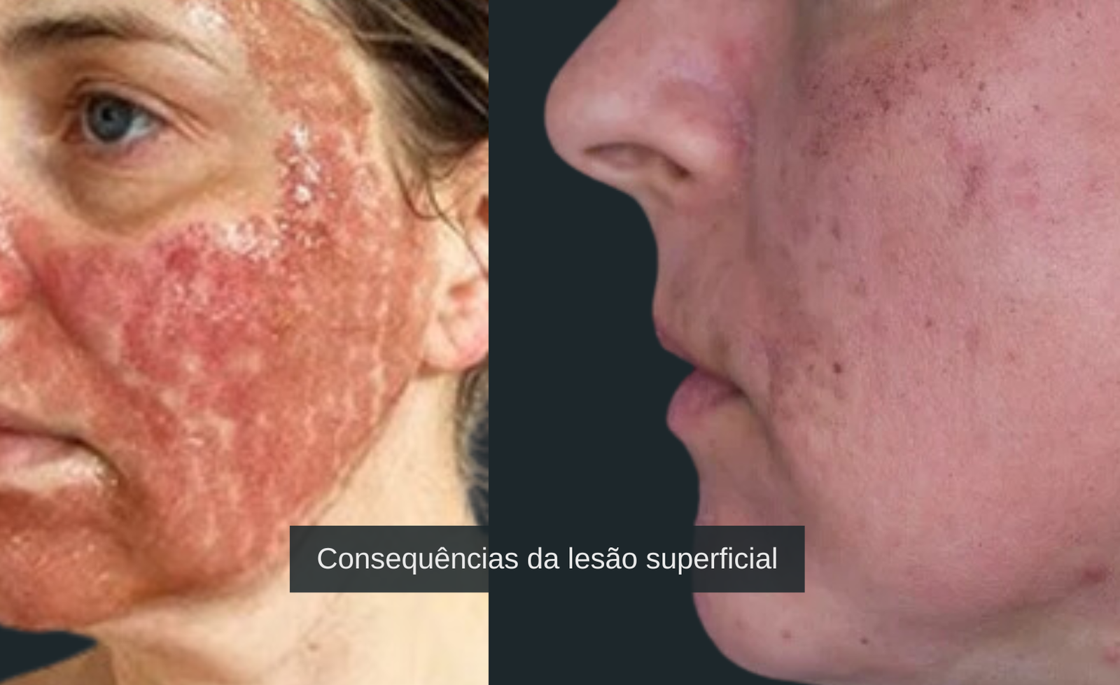 A eficácia desses tratamentos muitas vezes depende da capacidade de induzir uma “lesão” controlada na pele, que induz um processo de boa cicatrização que será a fonte de renovação celular e a produção de colágeno. Mas para chegarem lá, precisam atravessar e lesionar a camada superifical da pele, chamada de epiderme e derme superficial. Essa é a região onde se encontram muitos nervos e vasos sanguíneos.
