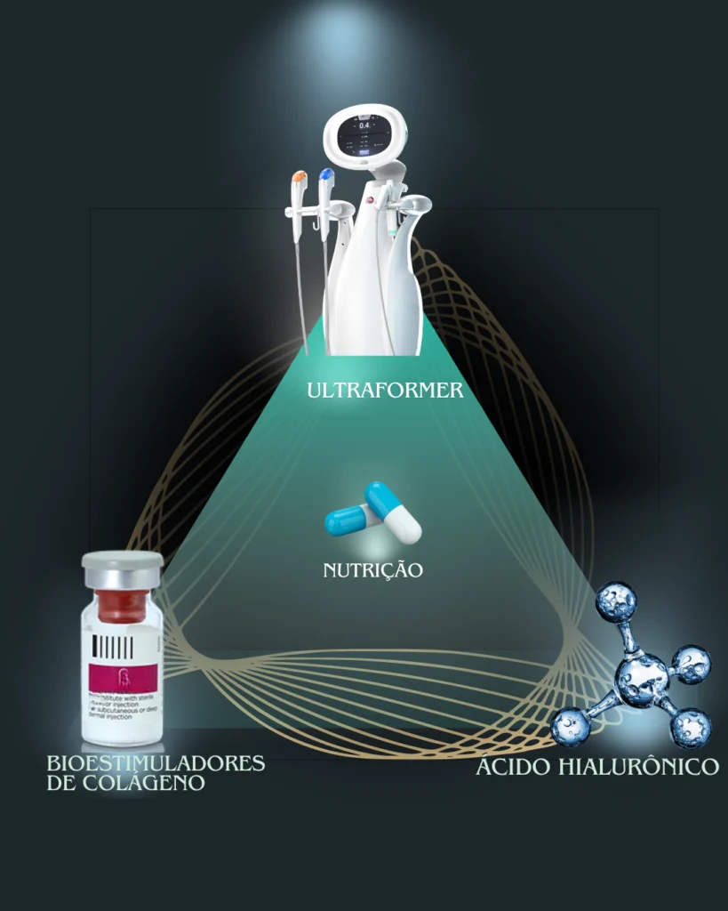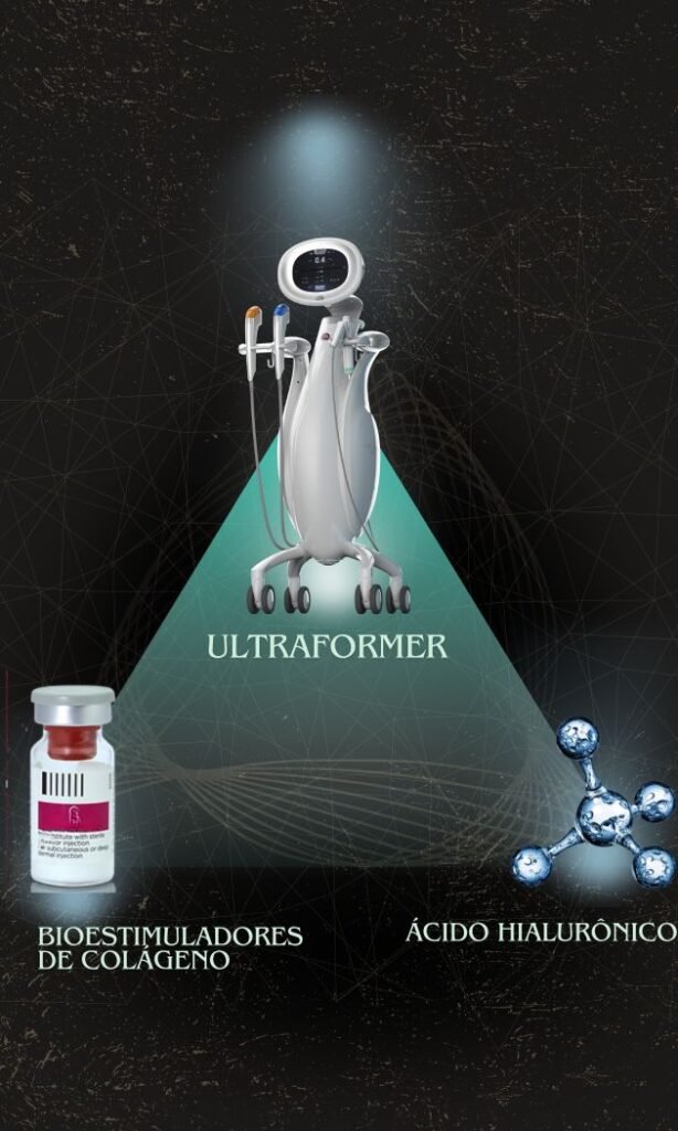 Enquanto o bioestimulador e o Ultraformer proporcionam resultados progressivos e de longo prazo na qualidade da pele e firmeza, o ácido hialurônico oferece um efeito imediato em termos de volume e suavização de linhas
